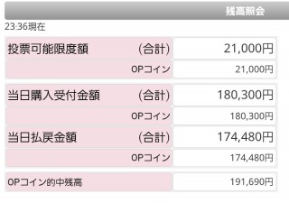 20万円は打ちきれず。18万円使って17万4000円。5000円ちょっとの負けである。でも、チャージバックは明日入るし、今日も同じようなイベントをやっている。なのでOPコイン的中残高を一度精算して、また今日もチャージしてみよっと。今日も頑張ります(もちろん仕事ですよ笑)